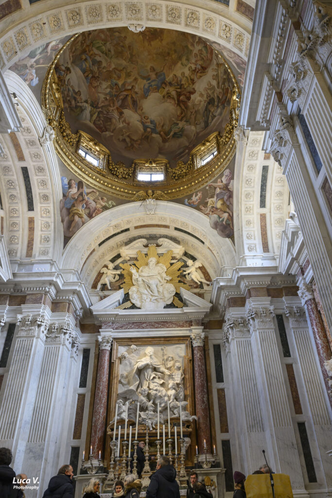 Contrappunto alla cappella Brancacci, dalla parte opposta, espressione massima del primo Rinascimento fiorentino con Masaccio, Masolino, Filippino Lippi, ora il Carmine ritrova un altro capolavoro, spettacolo di opulenza, teatralità e luce, tra architettura policroma, scultura e pittura, esordio del barocco a Firenze, con Giovanni Battista Foggini e Luca Giordano.